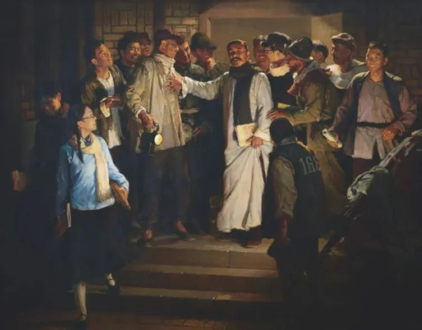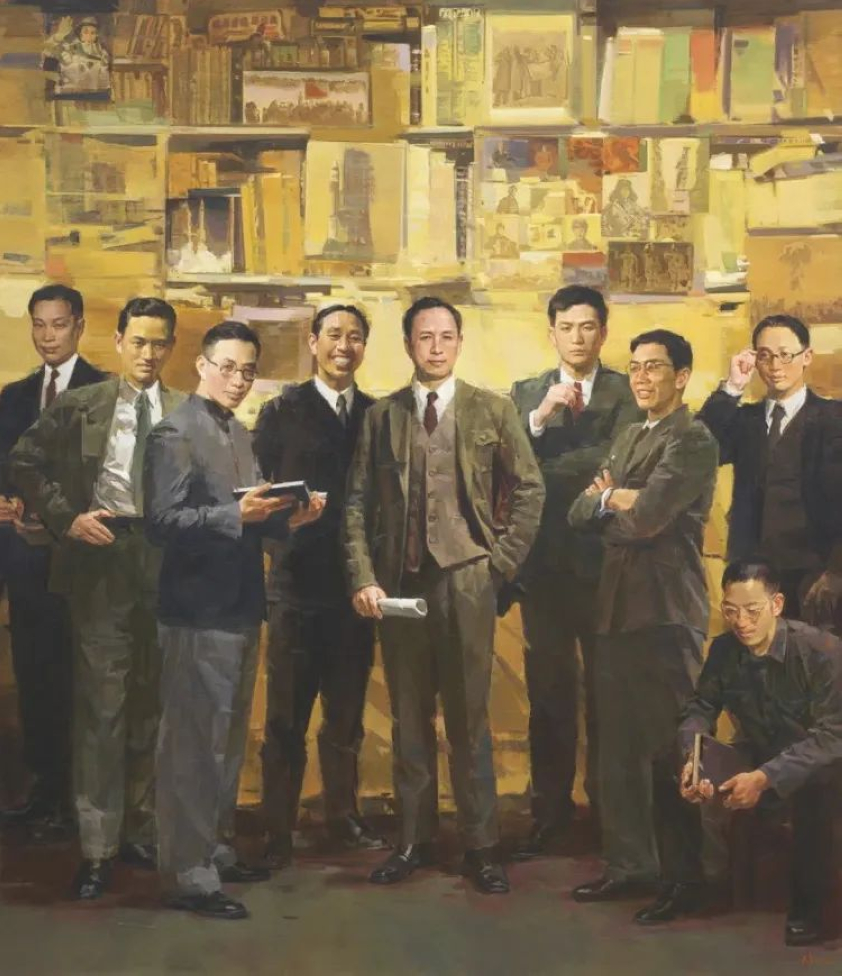 殷雄 《岁月流金——夏衍和他的朋友们》 200cm×236cm油画 上海