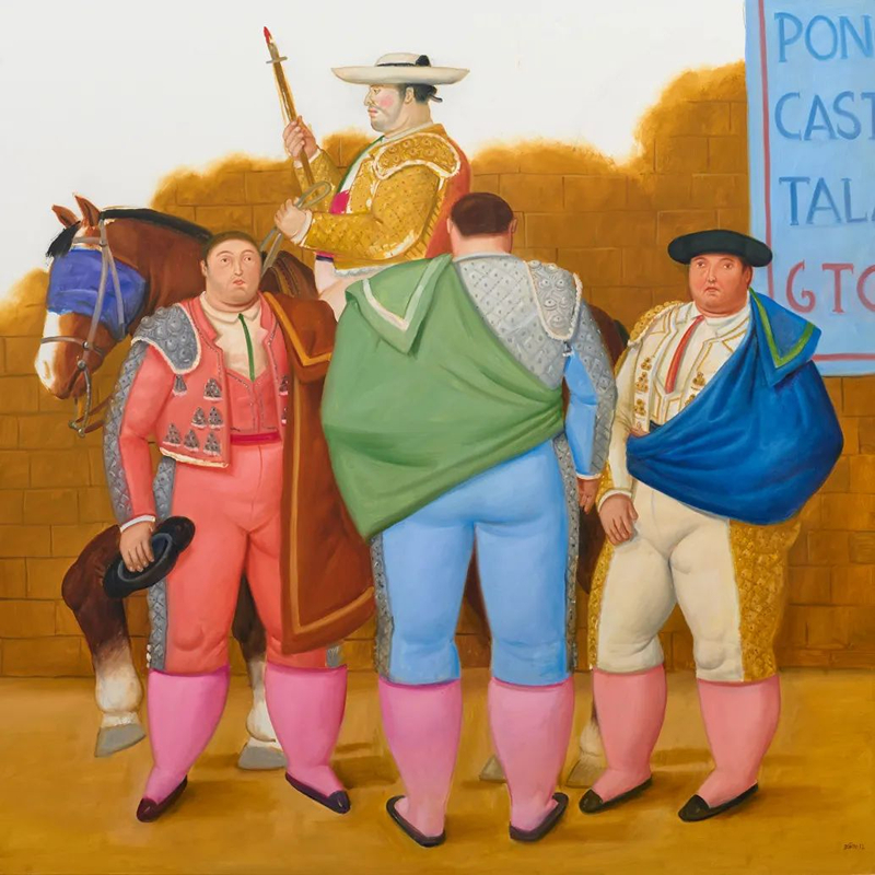 博特罗的艺术创作始于20世纪40年代,横跨七十余年。他曾先后旅居墨西哥、美国、意大利等地,在广泛的文化语境中吸收养分,形成了融合古典构图与现代精神的独特艺术风格。他深受意大利文艺复兴绘画的影响,特别是在比例、结构与人物塑造上追求一种静谧的永恒感,同时又植根于拉丁美洲社会现实,以艺术回应历史与命运。